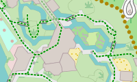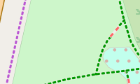 - (Gitter-) Schraffuren werden für Bereiche mit Zugangseinschränkungen (mil. Bereich, Baugebiete, Kraftwerk, Schrebergarten, Privatparkplatz, ...) verwendet.