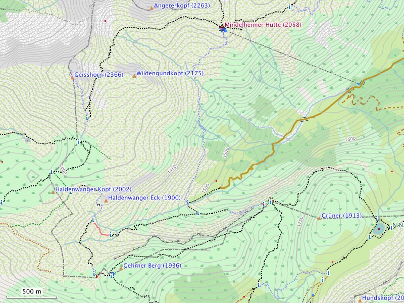 Kartendarstellung in BaseCamp: Der südlichste Landpunkt Deutschlands - markiert durch das Staatsgrenzzeichen Nr. 147 auf 1883m Höhe.